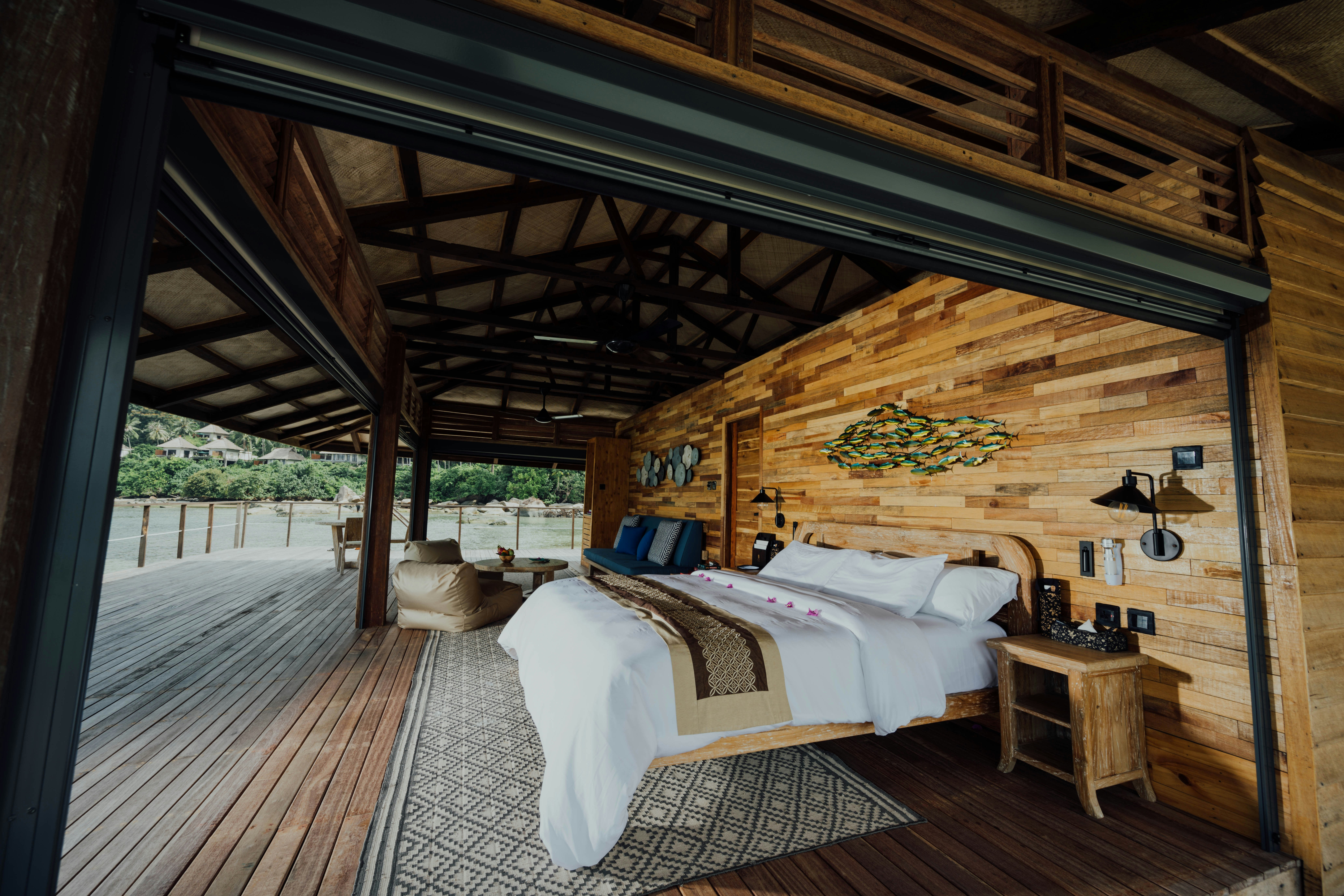 This style is based on white or sand colored foundation, with blue as its primary accent color. When it comes to materials, you can incorporate unfinished wood on the tables or chairs inside your cabin. Then, combine some chic linen upholstery for your lounge seats and sofas.